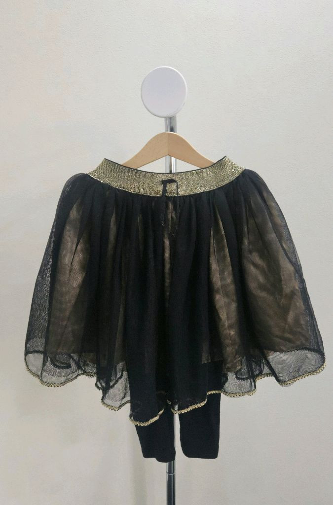 베베드피노 여아 스커트 레깅스입니다.😊 검정색 샤 스커트에 금색 포인트로 할로윈 및 일상룩으로도 예쁘게 입힐수있어요❤️