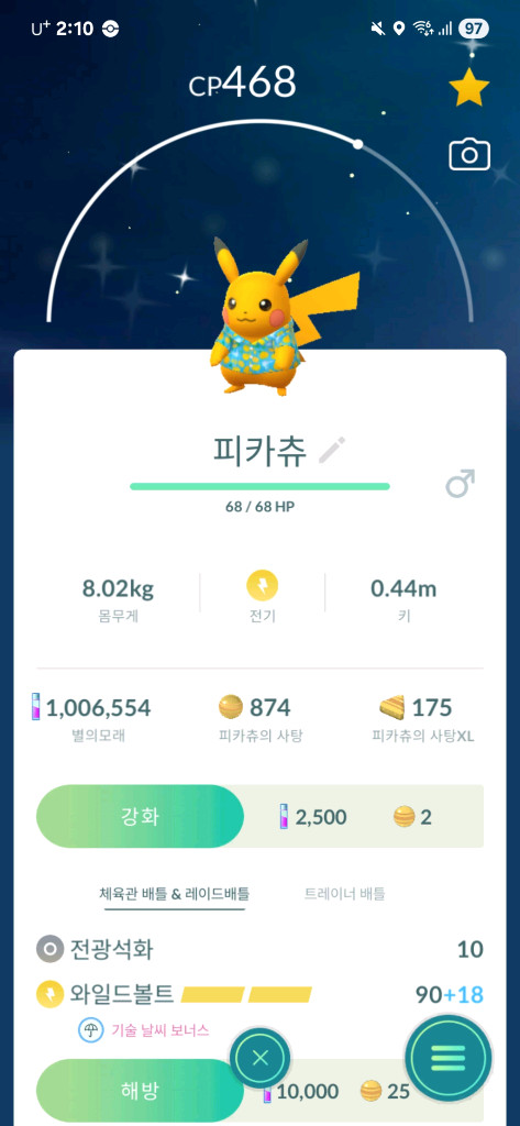 개인정보(거래정보)를 주고받는 행위는 사기에 노출될 수 있으므로 즉시 중고나라로 신고해 주세요포켓몬고 코스튬 피카츄 이로치 팝니다. 제가 gps를 통해 거래할것이고 피카츄 이로치 미등록시 울트라 프렌드 후거래하고 3000원 추가입니다