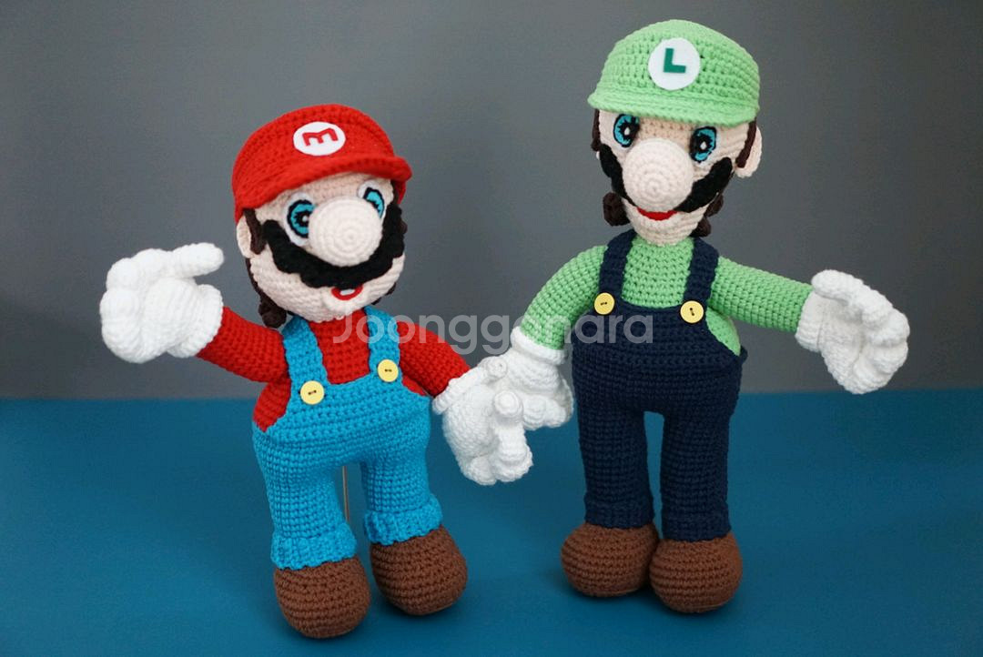 손으로 직접 만든 뜨개 인형입니다. 아직도 사랑받고있는 게임 캐릭터인 마리오와 루이지 입니다. 대부분 아실 것 같아요^^ 실은 저렴한 아크릴실이 아닌 면함유량이 높은 실이라 톡톡하고 보풀도 적어요. 크기는 대략 마리오는 30cm, 루이지는 34cm 정도 됩니다. 모자의 마크, 손가락의 디테일까지 너무 귀여운 인형이에요. 장식용으로도 이쁘고 아이들 선물로도 좋을 것 같아요 😊 도안출처 : toy Lovely 가격은 세트로 180,000원 (계좌거래⭕️ 안전결제❌️ 네고❌️) 일반택배 4,000원 🧶 구매 전, 채팅연락 부탁드립니다. 🧶 주문은 선입금 후제작 입니다. 🧶 취소/반품/환불은 안되니 신중히 구매해주세요. 🧶 기간은 일주일정도 넉넉히 생각해주시고 여유있게 주문 부탁드릴께요^^