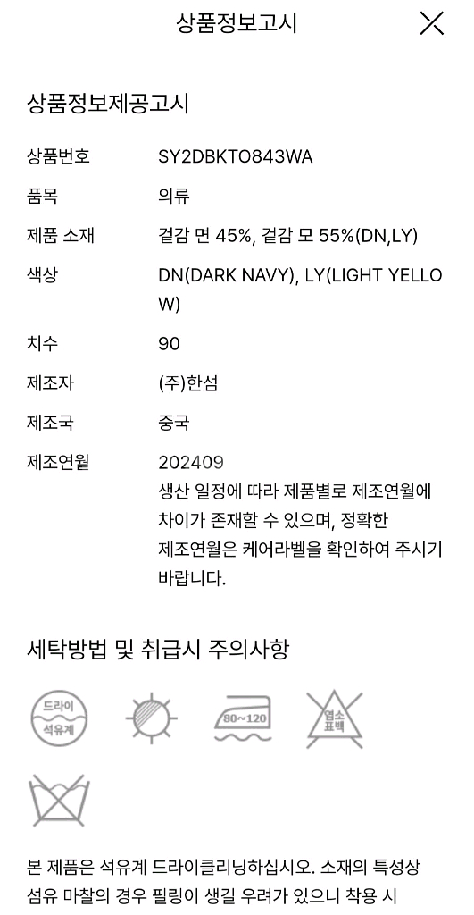 2024. 12월에 시스템 아울렛 구매. 추가할인 들어가서 10만원정도에 구입. 두세번 입고 드라이 후 보관중. 보풀.얼룩.하자 없어보이지만 새상품은 아니니 예민하신분은 패스해주세요. 너무 좋아하는 색인데ㅜㅜ 살이 쪄서 팔뚝이 부담스러운듯 하여 판매해요. 보통 55~66분들이 모델핏처럼 살짝 루즈하게 예쁘게 입으실거에요. 저처럼 팔뚝살 있으시고 어깨 넓으시면 팔이 붙는 느낌이라 부담스러우실수 있어요. 작게나온 옷은 아닌데 제 체형에서 팔이 부담스럽네요.