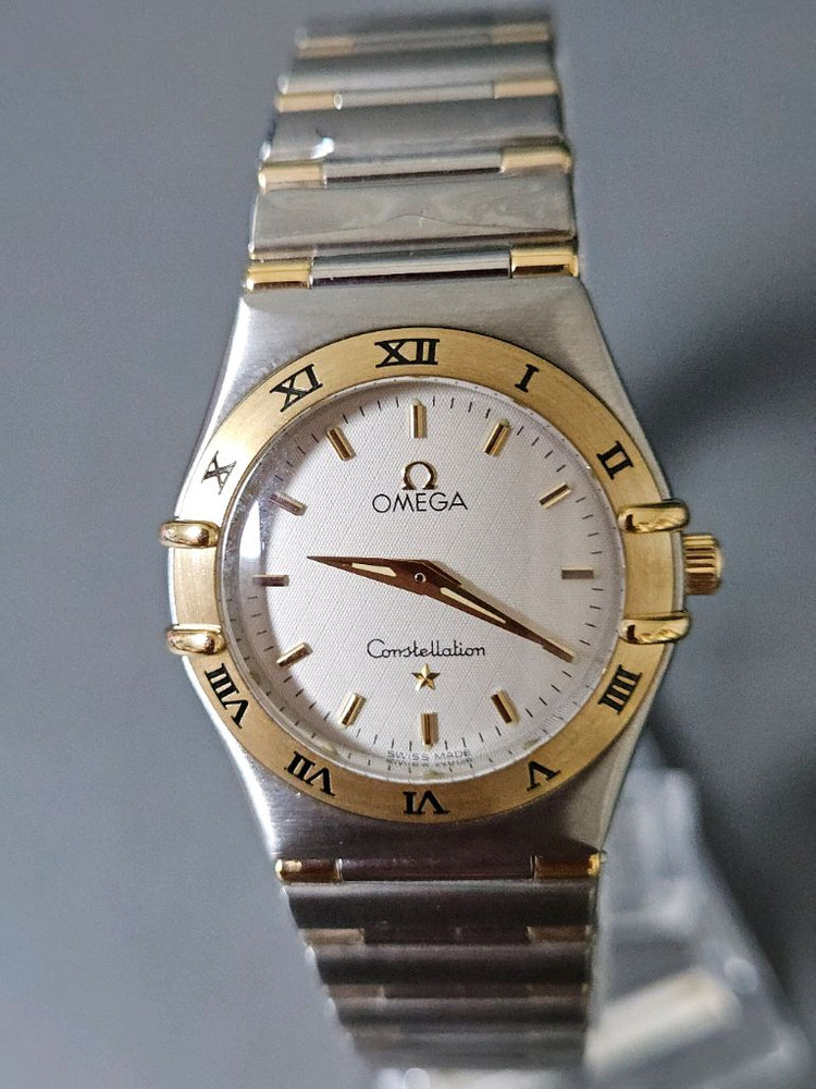 안녕하세요? 관심 가져주셔서 감사합니다 ^^ 오메가 컨스틸레이션 하프바 여성 콤비메탈 손목 시계 를 소개 드립니다 ~ 원형 흰판 원산지 ; SWISS MADE 정품 작동 방식 ; 쿼츠 전자식/건전지 방식 케이스 사이즈 ; 직경 약25미리 시계줄 길이 ; 약16.5센치 *시계줄 길이 늘리실분 별도 상담요망!!~ 시,분 2침 방식, 사파이어 크리스탈 글라스, 18K 로만인덱스 베젤 스텐레스 스틸 & 18K 브레이슬릿 SWISS MADE 쿼츠 무브먼트 시계 상태 ; 전체적 으로 소프트 폴리싱 및 오버홀 점검 완료 하여 외관상태 아주 깔끔하고 깨끗 하며 건전지 도 넣어 두어 ,구입 즉시 사용 가능 합니다 ~ 오메가 컨스틸레이션 하프바 시계는~ 잘 아시다시피, 오메가 라인의 시계중 BEST 스테디 셀러 아이템 으로 전세계 모든 여성들과 남성들의 사랑과찬사를 받고 있는 제품 이죠~ 흰색 다이얼에 골드 핸즈와 18K 골드 베젤, 18K 골드 콤비 브레이슬릿 으로 구성 되어 있는 아주 고급 스럽고 럭셔리 드레스워치 로 아주 좋은 아이템 입니다. 전체적인 상태는 A++. 입니다. 구성품 으로는, 시계 본품과 정품 케이스 입니다. 보증서를 분실 하여. 비교적 저렴 한 가격에 드리오니 많은 관심 부탁 드립니다 ~ *방수는 생활방수 정도 되나, 항상 물에 조심 하시는것이 *헬로페이 안전결재 환영 합니다.