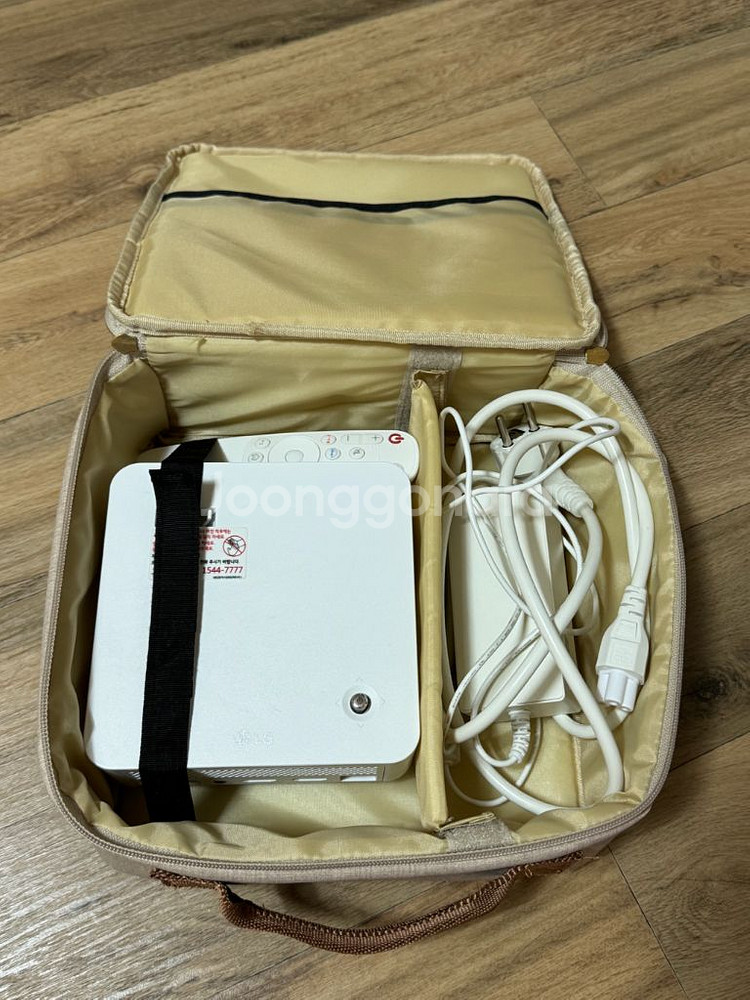 LG PF510QA 프로젝터 판매합니다 정품이고, 제조년월은 24년 3월 19일로 최근에 생산된 제품이에요 구성품은 본체, 전원 어댑터, 리모컨 모두 포함되어 있습니다. 전용 파우치는 별도로 사이즈 맞게 구매했습니다. 필요하시면 함께드리니다. 파우치가 두꺼워서 충격보완 되고 좋아요 거치가능한 미니 삼각대 필요하시면 함께드립니다. 전체적으로 깨끗하고 상태 매우 좋음