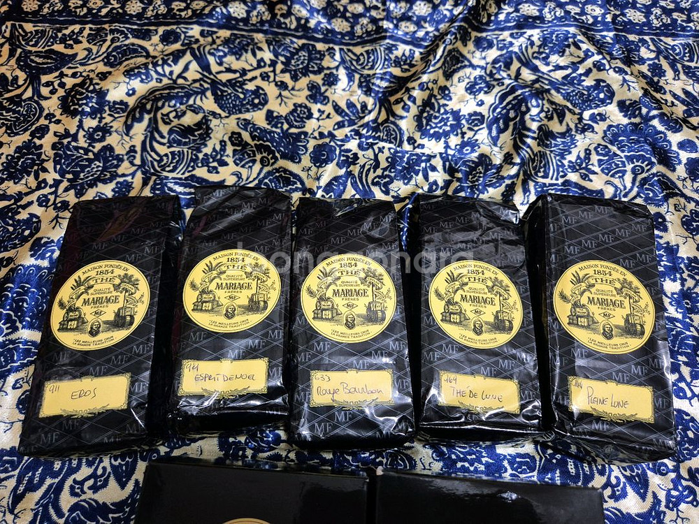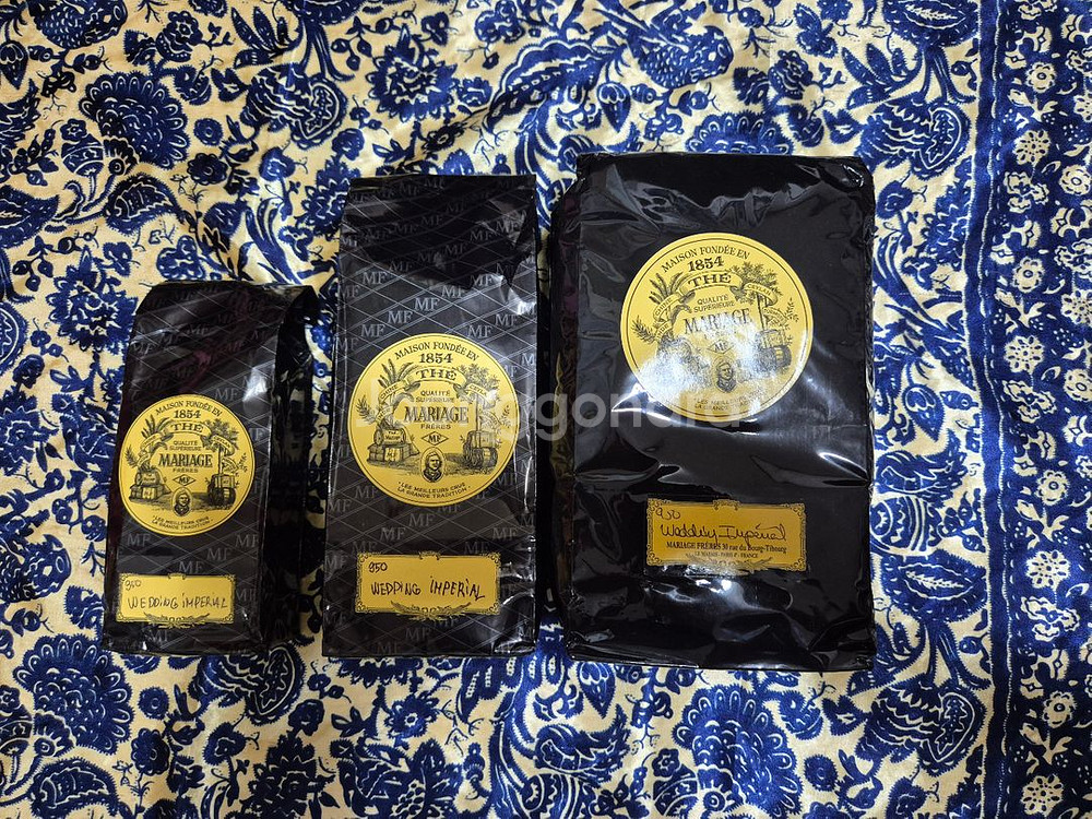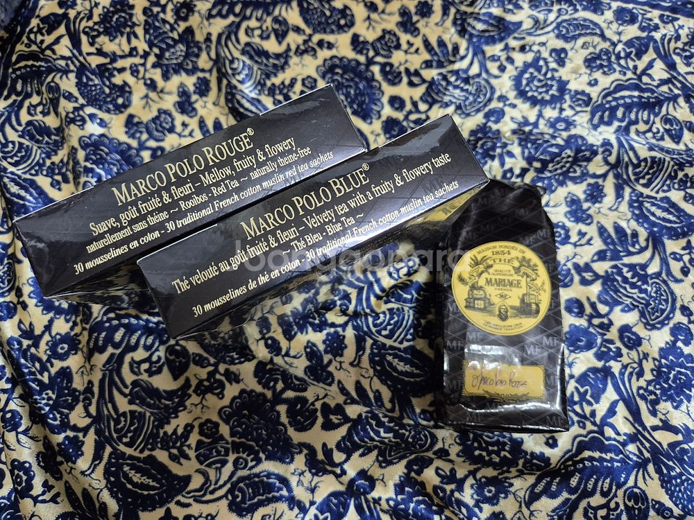 ★마리아쥬 프레르(Mariage Frères) 틴&티백 포함 2개 이상 구매 시 매장 쇼핑백 같이 드립니다. 2024.11 마들렌매장 & 2025.01 갤러리라파예트 & 2025.02 쁘랭땅 오스만, 2025.09 마들렌에서 직접 담아 주었기에 별도 유통기한 표시는 없습니다. 통상 3년 보며 최장 5년(틴)이 기준입니다.구매시기따라 환율,가격인상으로 차이 있습니다. 1. 마르코폴로 (MARCO POLO®) 500Gg1 133,000원 / 200g 56,000원 / 100g 28,500원 / 틴(100g) 38,000원 / 티백 40,000원 2. 마르코폴로루즈(MARCO POLO ROUGE®) 100g 28,500원 / 티백 40,000원 3. 마르코폴로 블루(MARCO POLO BLUE®) 티백 47,000원 4. 웨딩임페리얼(WEDDING IMPÉRIAL®) 500Gg 125,000원 / 200g 54,000원 / 100g 27,500원 5. 볼레로 (BOLERO®) 잎200g 52,000원 / 잎100g 27,000원 6. 카사블랑카 : 틴케이스100g 38,000원 7. 에로스 (EROS) : 잎***g ***g **,***원 8. 이스프리 드 노엘(ESPRIT DE NOËL®):잎100g 28,500원 9. 미라보 (MIRABEAU®) : 틴케이스100g 37,000원 10. 얼그레이프렌치블루 (EARL GREY FRENCH BLUE®) 100g 28,500원 / 티백 40,000원 11. 플랭룬(PLEINE LUNE®) :100g 27,500원 12. 떼드 룬(THÉ DE LUNE®):100g 27,500원 13. 루즈 버번 (R*UGE B*URB*N):***g **,***원 어플 상 사진이 네이버에서 전부 보여지지않는다합니다. 번거로우시더라도 어플로 사진을 확인해주시면 감사합니다. 여러개 판매중으로 안전거래 결제 시 물품에 따라 금액조정필요합니다. 5개 이상 구매 시 무료배송가능합니다.상품 정보 내 개인정보는 자동 보호됩니다. 안심결제로 안전하게 거래하세요.