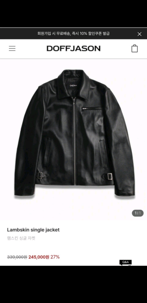 도프제이슨 공홈으로 주문하여 받았으나 사이즈가 도저히 맞지 않아 단 한번도 입지 못한 비운의 새상품입니다... 이때 시착 1회 이후 옷장에만 모셔두었습니다 공식홈페이지 기준 245000원, 무신사 210000원이고 만듦새 좋은 깔끔한 양가죽 자켓이에요 원하시면 사진 더 보내드립니다 택배비는 별도입니다