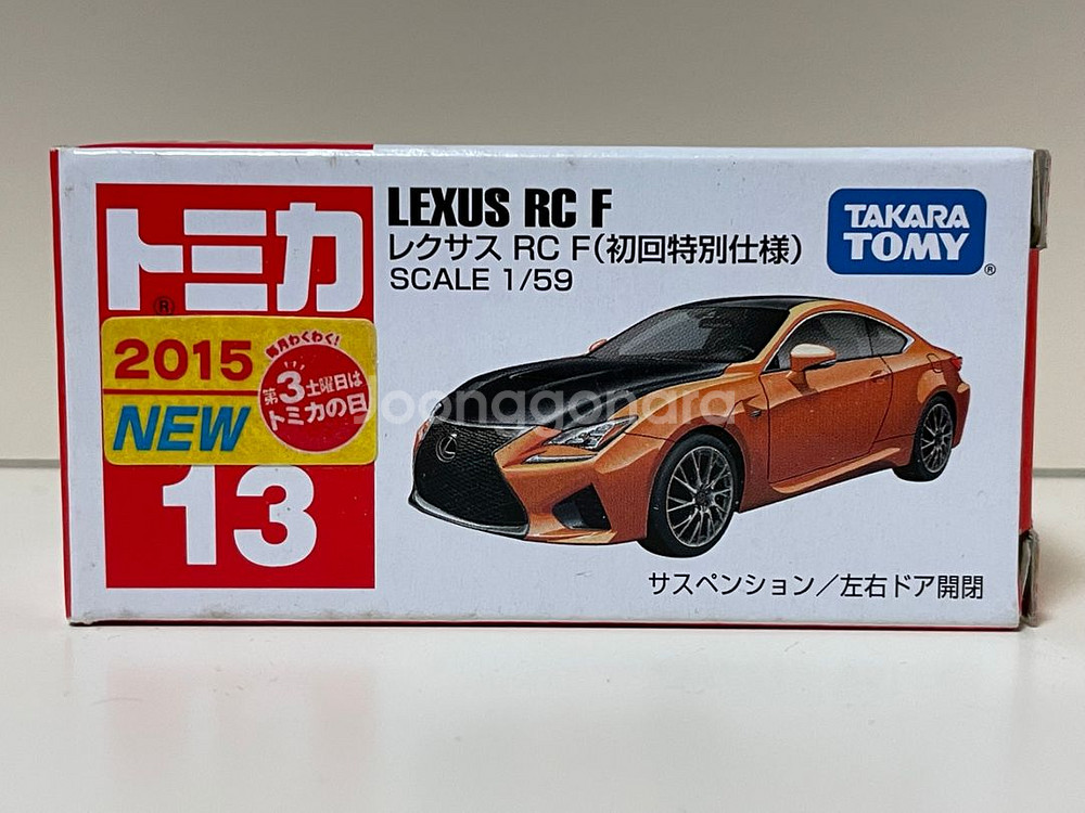 토미카 단종 모델 No.13 렉서스 RC F 초회특별사양 판매합니다. 가격은 13000 ➡️7000, 배송비 별도입니다. 휠 크롬 도장 불량 문제가 있습니다. 신차 씰 부착 모델이라 희귀합니다.