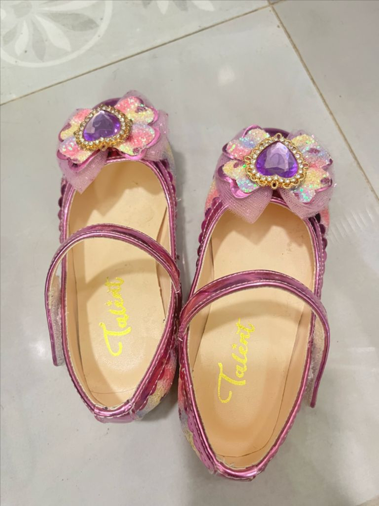 Talent 브랜드의 예쁜 핑크색 여아 구두입니다 큐빅 장식과 반짝이는 디테일이 아이들의 시선을 사로잡아요 발등 스트랩이 있어 활동 시에도 편안하게 신을 수 있습니다 굽 높이는 약 2cm 정도로 안정적이에요 바닥에 약간의 사용감이 있지만, 몇번 안 신어서 전체적으로 깨끗하고 상태 좋습니다 - 직거래 가능합니다 - 반품은 불가합니다 - 반값택배 가능합니다