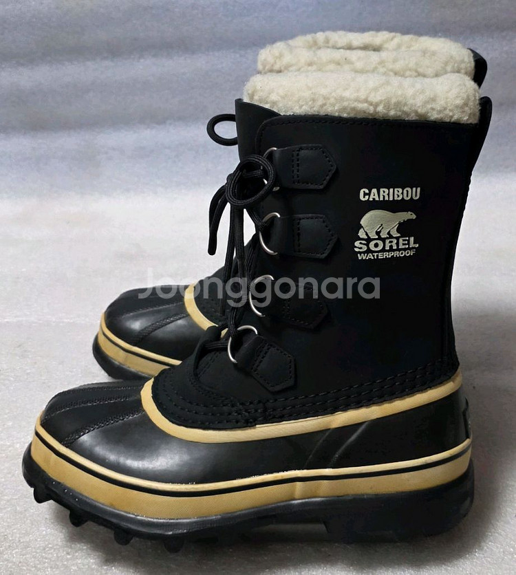 소렐 SOREL 정품입니다 가죽방한화의 기준이 되는 최고의 모델입니다 모델명은 카리부입니다 남녀공용 USA 8(250)이고 크게 나왔습니다 보통발볼 남성 250 여성 255~260 잘 맞습니다 발볼이 날씬하면 남성분 255도 맞습니다 외피는 전체가 방수되는 가죽입니다 내피는 분리되는 버선 형태입니다 바닥창 미끄럼방지 탁월합니다 방한 방수 거의 완벽하게 차단합니다 추운나라 여행가실때 꼭 필요합니다 낚시 캠핑 야외에서 작업하시는분 추천합니다 보기보단 그리 무겁지는 않습니다 투박해 보여도 불편함 없습니다 눈오고 추운날 신어보시면 제대로 입니다 사용감 거의 없고 상태는 좋습니다 가죽에 구김이나 사용감도 없습니다 바닥창 상태는 닳음도 없는 거의 새것입니다