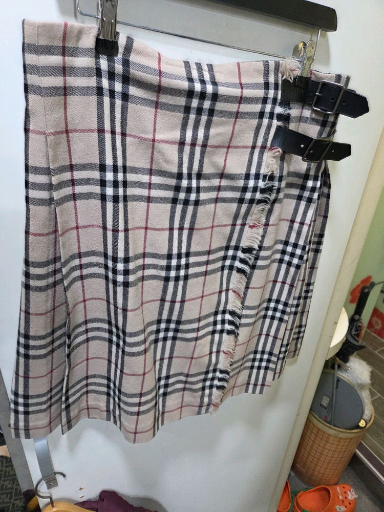 버버리 런던 정품 노바체크 스커트입니다. - 클래식한 체크 패턴이 특징입니다 - 포인트로 가죽 버클 디테일이 있습니다 - 재질은 울(wool) 100%입니다 - 자연사용감은 조금 있지만 상태는 좋습니다 허리30-32 조정가능 기장60