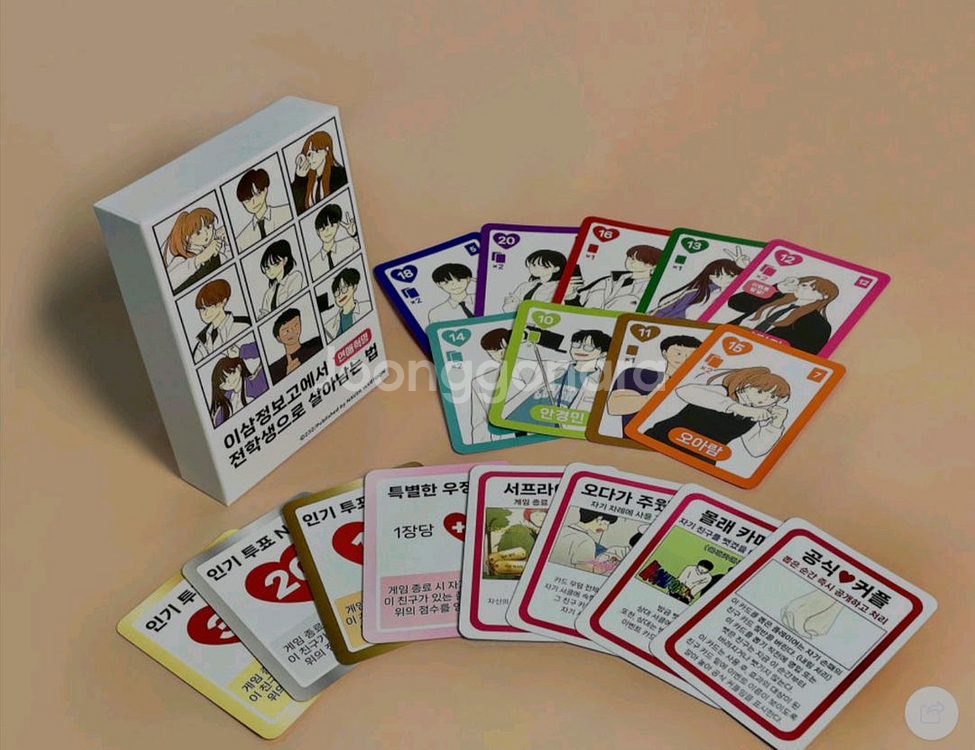 개인정보(거래정보)를 주고받는 행위는 사기에 노출될 수 있으므로 즉시 중고나라로 신고해 주세요웹툰 연애혁명 보드게임입니다. 새제품이고 2인 이상 즐길 수 있어요~ 친구 또는 커플끼리 하면 재밌어요 독립문역 직거래, cu반값택배 가능