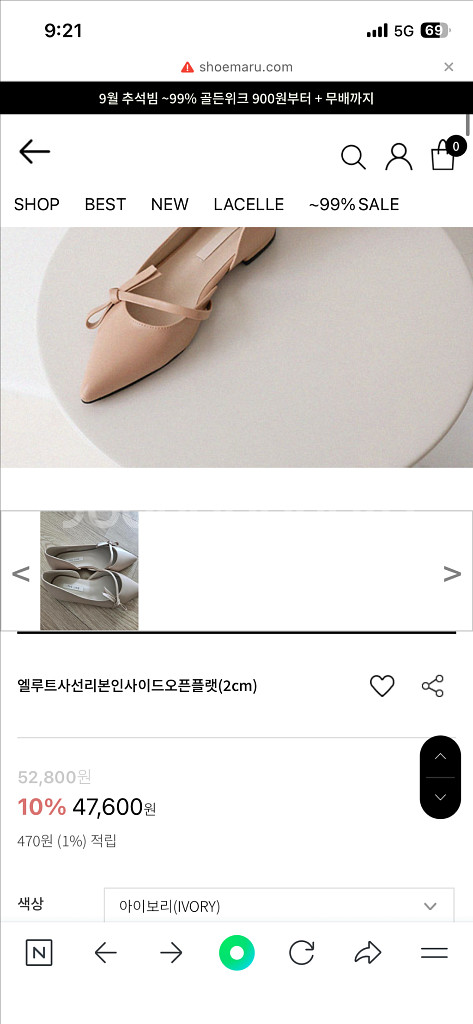 슈마루 앨루트사선리본인사이드오픈플랫 (H101305) 아이보리 250mm 새상품입니다. (발볼이 좀 작게 나왔어요. 참고해주세요.) 가볍고 편안한 착화감을 자랑하며, 다양한 룩에 매치하기 좋은 플랫 디자인이에요. - 색상: 아이보리 - 사이즈: 250mm - 모델: H101305 박스랑 포장 그대로 드립니다. 편의점 반택 2천원 추가된 금액입니다.