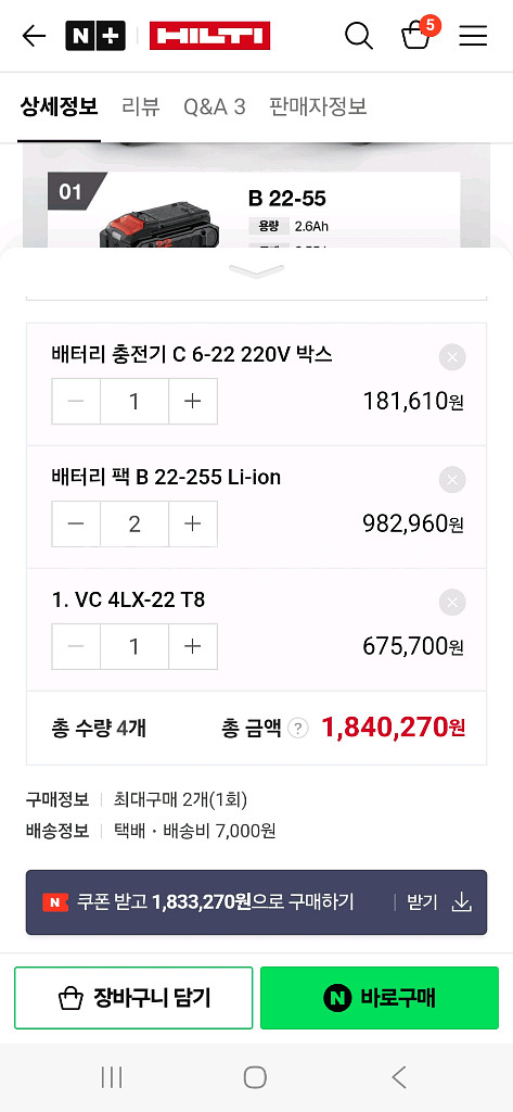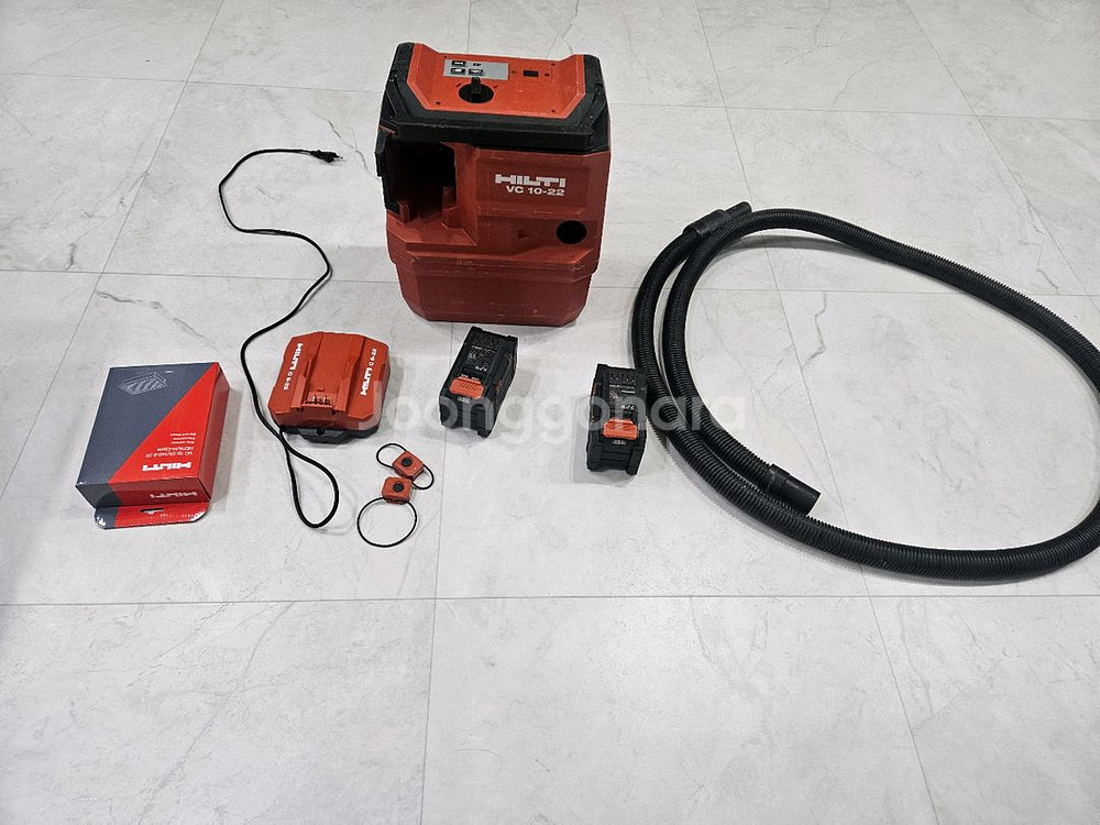 힐티 뉴론 무선집진기 vc10l-22 현재 모델명을 vc 4lx-22 로 바꾸면서 가격을 내렸어요 기존판매가(84만) 뉴론배터리 b 22-225 (12암페아) 2개 뉴론 고속충전기 c 6-22 220v 1개 불루투스 수신기&리모컨 (2개) h등급 미사용,미개봉 필터 1개 필요하시면 집진기 보관및 이동형으로쓸수있고 아래칸은 충전기,배터리보관이 가능한 티스텍 같이드릴께요 (레버가 한쪽이 파손되어 자가수리했어요 사용상문제는없습니다 ) 집진기 무상as 기간(2년) 26년 11월 29일까지 이고 판매전 본사로 보내 점검완료 인천 용현동 직거래 네고문의 받지않습니다 판매가격 110만