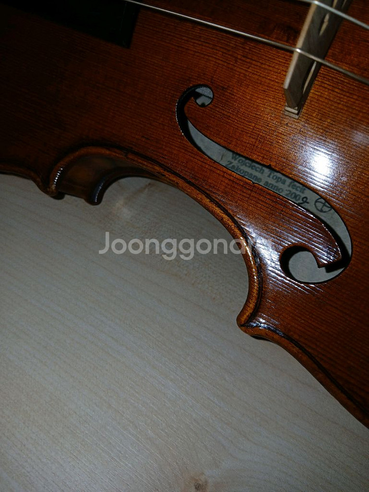 폴란드 제작자 Wojciech Topa 2009년 제작입니다. 음색이 독주용으로 적합하고 경희궁 스트라디공방에서 점검하고 브릿지, 현 교체했습니다. 새악기 기준 현 시세 16,000불이며 유튜브나 구글 검색하시면 동영상과 관련된 정보 보실 수 있습니다.