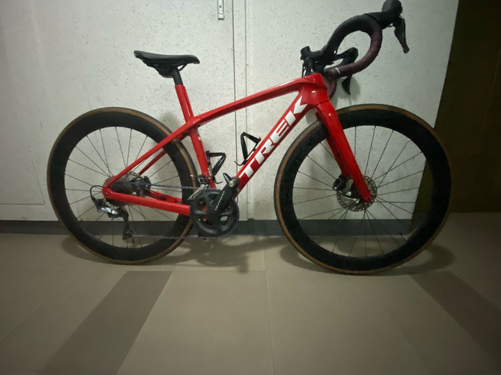 21년에 자전거 입문해서 타던 자전거입니다 처음 입문해서부터 사용한거라서 사용감 있습니다 - 트렉 도마니 sl6 울테그라 기계식, 10-34 11단, 47사이즈 - 안장은 본트레거 기본 구성 안장 - 자전거 휠 에울루스프로 51로 업글 (초기 구매비용 150,클린처로 사용 중) (원래는 본트레거 패러다임콤프이고 보유 중이라서 필요하면 같이 드릴께요) - 왼쪽 레버 올해 교체 - 페달 미포함 (구매의향은 “공일공 이사공팔 팔칠칠이”로 연락주세요)