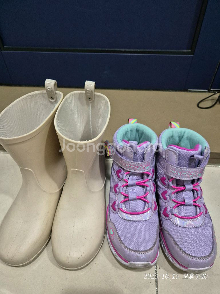 흰운동화220 나머지230사이즈며 가운데 신발은 거의새신발이에요 사이즈 작게나옴(휠라키즈비슷) 레인부츠220 스케쳐스210 일괄 판매입니다