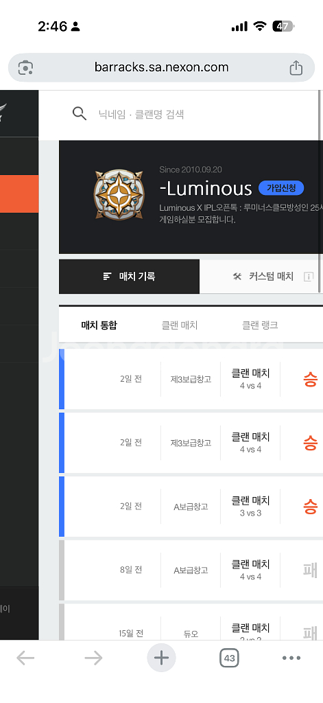 서든 클랜 A등급 1077등 54153전 57% 최근까지 키우던 클랜입니다 마크 클명도 이뻐서 바로 키우셔도 됩니다 안전한 클랜구매하세요 가격내림 15 급처합니다 ***********상품 정보 내 개인정보는 자동 보호됩니다. 안심결제로 안전하게 거래하세요.
