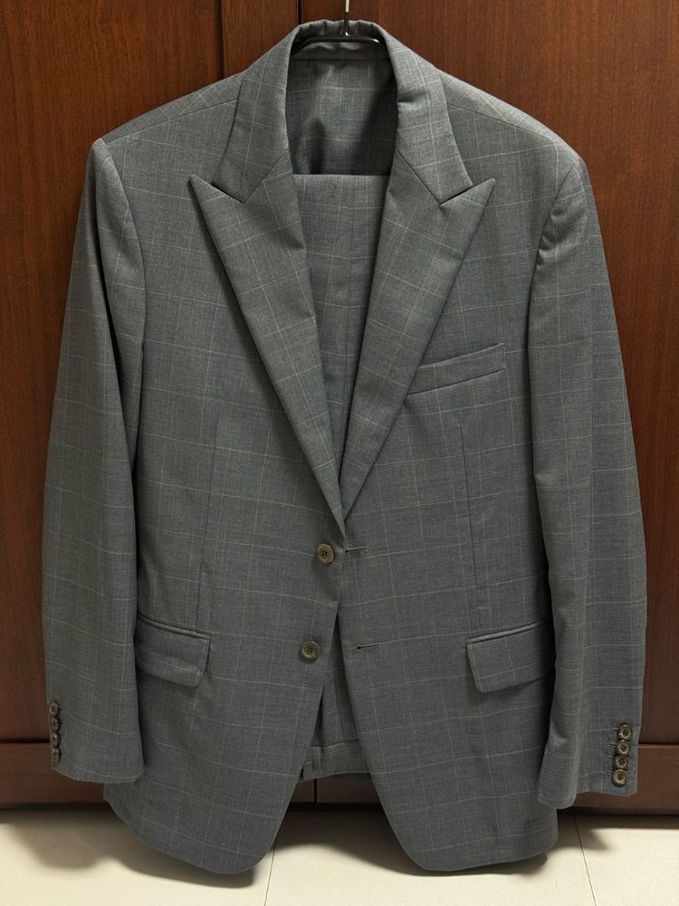 엘가노벰버 그레이 체크 정장 100/30 사이즈입니다. 무난한 색감, 피크드 카라인지라 완성도가 높고 중요한 자리에서나 평상시에나 활용하기 좋습니다. 구매 당시 70정도 주고 구매했습니다. 어깨 46 가슴 51 팔 62 기장 76 허리 41 밑단 17.5 허리 30 기장 99