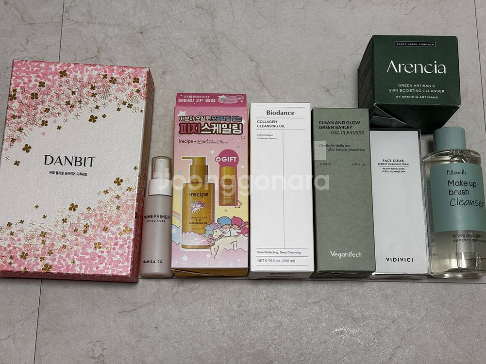 각 1회사용 유통기한 문의주세요 - 단빛 메이크업 픽서 프라이머 기획 20000원 - 바닐라코 프라임 프라이머 픽서 10000원 - 아이레시피 본품200ml+헤어핀 15000원 - 바이오던스 클렌징오일 18000원 - 비건이펙트 청보리 젤 클렌저 13000원 - 비디비치 클렌징폼(새상품) 6000원 - 아렌시아 그린 아르티장 클렌저 23000원