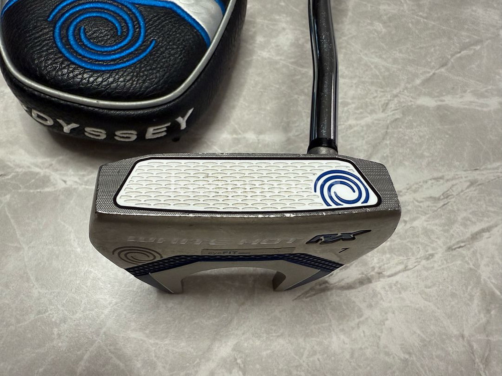정품) 오딧세이 화이트 핫 RX 7 33인치 말렛 퍼터 입니다. 오딧세이 퍼터는 다루기 너무 편안한 클럽입니다. 거리 조절도 아주 쉽고 방향성도 최고를 자랑 합니다. 그립은 가슨맥스 그립으로 바꿨습니다. 안정적인 그립감으로 사용 해보세요.