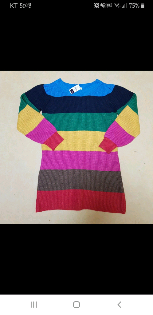 갭 레인보우 니트 원피스 120 보트넥 퍼프 소매 끝단 시보리 넉넉한 기장감 면 아크릴 나일론 혼방 너무 두껍지않은 환절기용 니트 새상품 2만원 교환환불불가