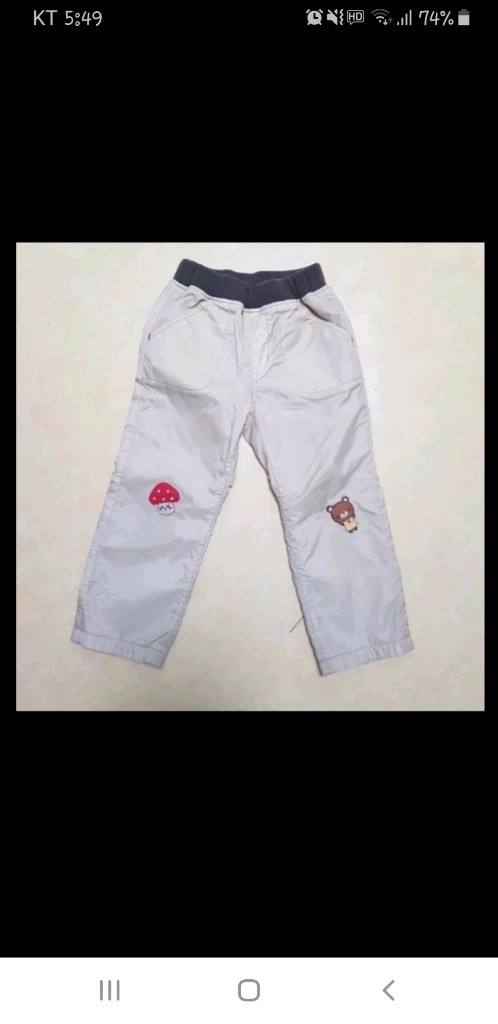 미키하우스 기모 겹바지 100사이즈 한겨울용 베이지 외피에 허리 밴딩 안감 기모 원단 귀여운 버섯 곰돌이 패치 남아여아공용 삼만원 교환환불불가