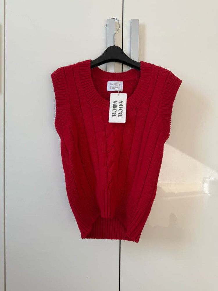 보카바카 니트예요. 원사이즈로 프리사이즈고 현재는 품절된 상품입니다. 레드색상이예요. 셔츠 위에 입기 좋아요.