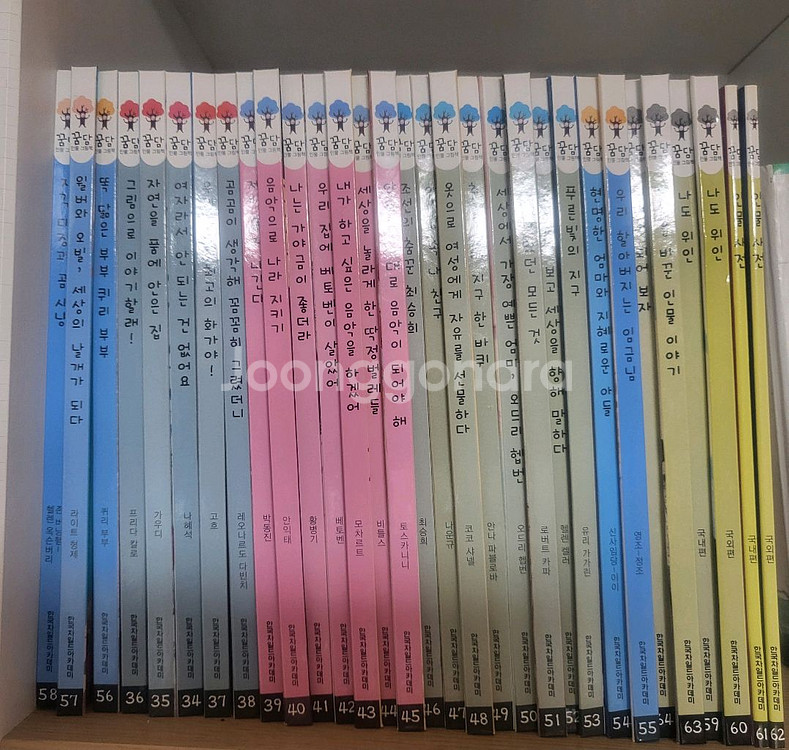 교원 꿈담 인물그림책 전집 62권 2019년도에 구매 초1까지 열심히 읽었어요 책 상태 정말 좋고 흠집이나 찢김 전혀 없어요 단기간에 바짝 읽고 책장에 5년정도 보관만 되어있던 상태예요 원래 1권부터 64권까지인데 61,62권만 없네요;;; 그래서 인물사전책 2권 드립니다. 직거래 원합니다. 연락주세요.