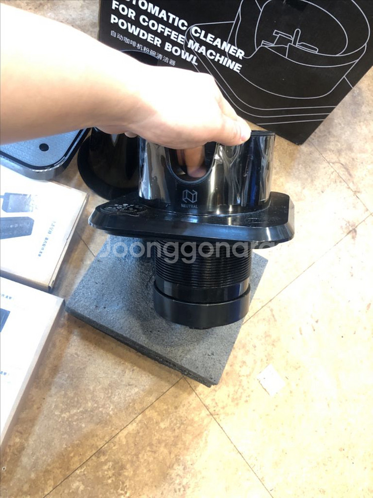 NEUTRAL 브랜드의 커피 머신 파우더 볼 자동 청소기입니다 새 제품으로 박스에 담겨 있으며, 사용 흔적 없이 깨끗한 상태입니다 구성품으로는 NS100 표준 커피 찌꺼기 봉투(15개), NS100 표준 코오난 청소포(1개), 전원 어댑터, 설명서 등이 포함되어 있습니다 커피 머신 관리를 편리하게 해주는 제품으로, 위생적인 사용이 가능합니다