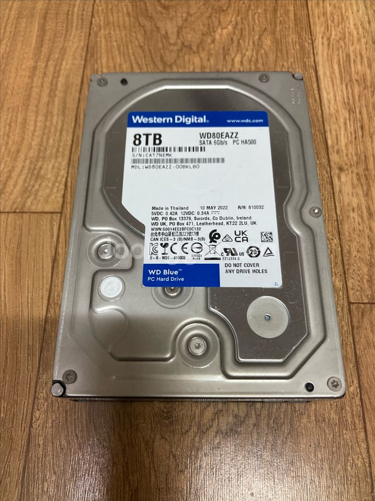 Western Digital WD Blue 8TB 하드디스크입니다. - 모델명: WD80EAZZ - 용량: 8TB - CrystalDiskInfo 결과 상태 좋음 - 제조일자: 22년 5월 As 는 종료입니다 남성역 직거래 또는 택배 (착불, 파손면책) 입니다