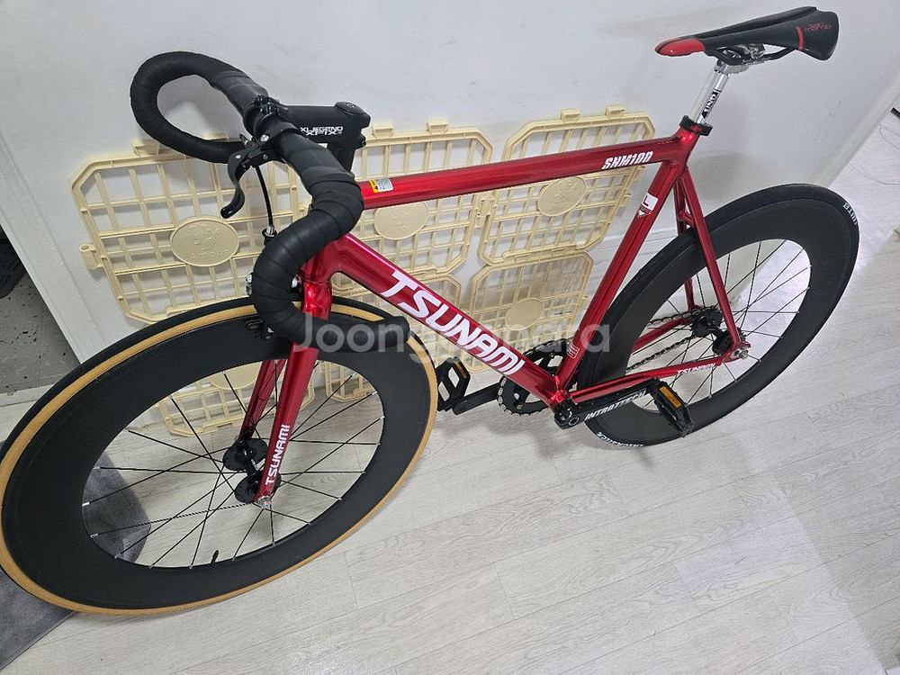 쓰나미 SNM100(레드와인), 88림, 카본 에어로바, 프리휠전환가능 기어 조합 픽시 입니다~ 올해 8월에 받아서 2개월정도 탓고 최초 구입비 98만원 정도 이고 짭마르코 안장까지 100넘게 들었습니다~ 생활기스 있는 정도인데 얼마되지 않아 전체적으로 깨끗하고 왼쪽 크랭크암이 떨어진적이 있어 크랭크에 기스가 좀 있습니다~ 사진 첨부했어요 특별한 하자없고 뒷타이어 정도 교체하면 될듯 합니다~ 필요하시면 교체 가능한 식슬릭 타이어 1개 드립니다 타이어튜브도 어댑터 연결로 바람 넣기가 어려워서 100mm로 2개 주문해 놓았는데~ 튜브도 드립니다~ 앞 브레이크 달려있고 카본전용 브레이크 패드 달려있습니다 자전거 특성상 직거래가 좋으니 연락주세요~~