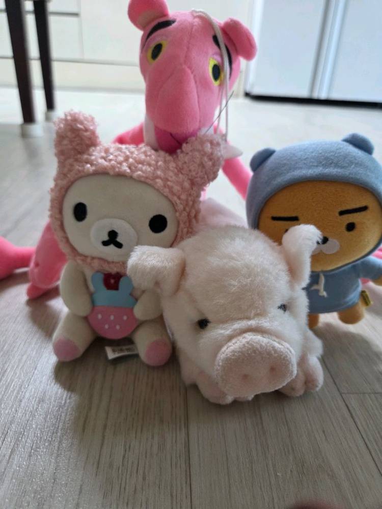 카카오프렌즈 라이언 리라쿠마 핑크팬더 피기 판다 인형세트 일체 사진상의 인형세트