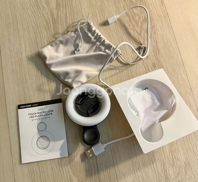 사용 얼마 못하고 보관만 해서 판매해요 스마트폰 카메라 부분에 끼워서 사용하는 접사렌즈입니다 충전식이며 led조명을 조절하여 선명하게 접사사진을 찍을 수 있습니다