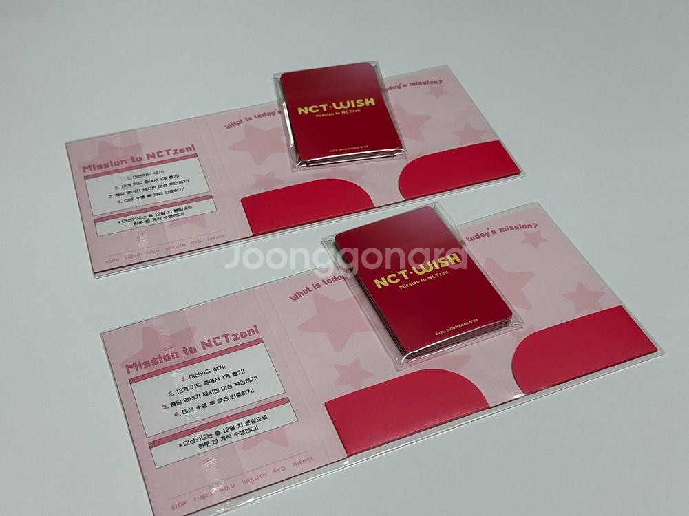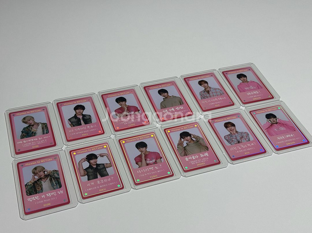 nct wish 엔시티위시 디아이콘 미션카드 세트 미션카드 12장+케이스1 마지막 사진에 있는 12장 1세트로 구성되어 있습니다. 카드 맞게 들어있는지 확인하느라 단순개봉 후 다시 그대로 넣어뒀습니다:) 1세트 13,000원 🌸상점에 판매중인 다른 상품과 함께 구매 시 가격 조정 가능합니다! 편하게 문의 주세요!😊