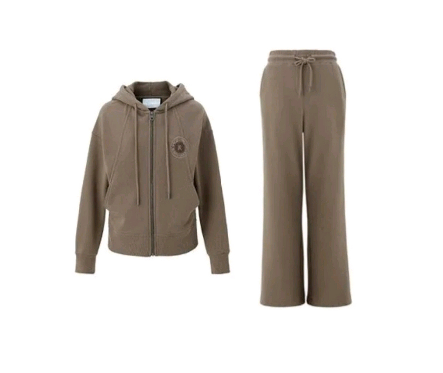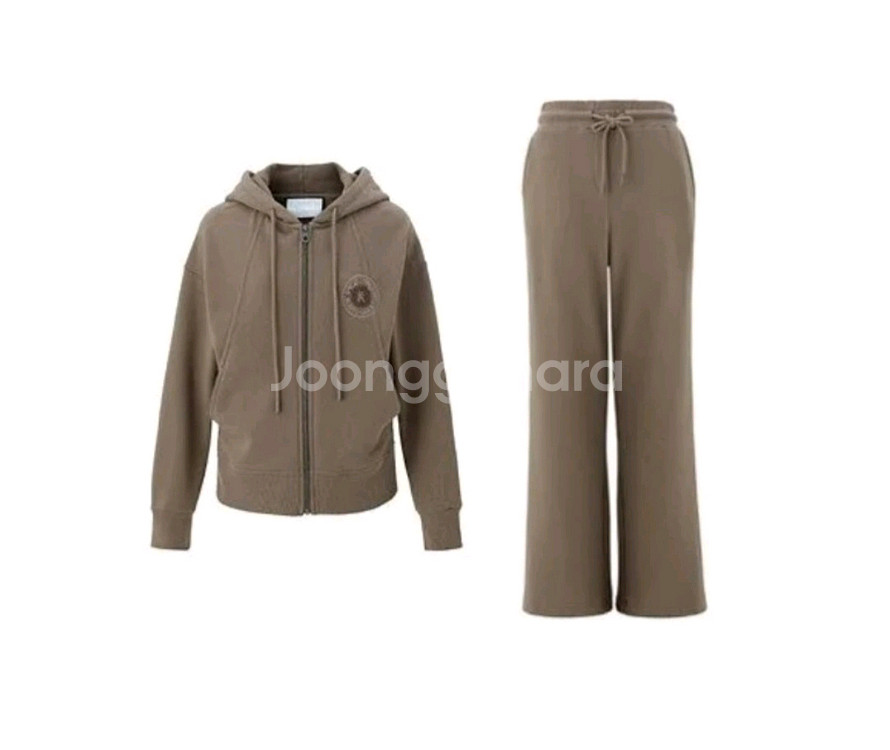 🎯 GS택배 가능합니다. (일반택배 5000원, 반값택배 2500원 추가해 주세요.) 칼라거펠트(Karl Lagerfeld)의 이지웨어 셋업입니다. 카키브라운 색상으로 88사이즈입니다. 접어두어서 구김 있습니다. ㅡ 후드집업 ㆍ밑단과 소매단 립으로 처리하여 활동성이 좋습니다 ㆍ후드는 분리되지 않습니다. ㅡ 팬츠 ㆍ밑단으로 갈수록 플레어지는 라인입니다. ㆍE-BAND가 내장되어 있어 편안합니다. ㆍ양쪽에 포켓 있습니다.