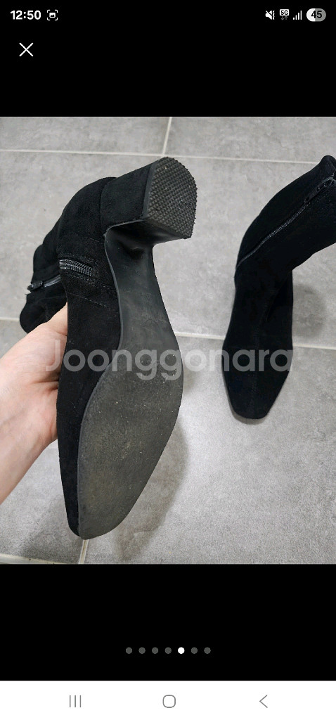 사뿐에서 판매하는 호레인 삭스 앵클부츠입니다 색상은 블랙이고 스웨이드 재질입니다 굽 높이는 5cm입니다 기모안감 사이즈는 240입니다 뒷굽 보시면 아시겠지만 교체해놨구요 푹신한 쿠션 깔아놨어요 구매한건 23년도인데 운동화만 신는 캐주얼 스타일이라 그런지 손이 잘 안가더라고요 24년도에는 한번 신고 계속 보관만 해왔습니다 언젠간 신겠지..라고 가지고 있었지만 저와는 스타일이 안맞아 판매합니다
