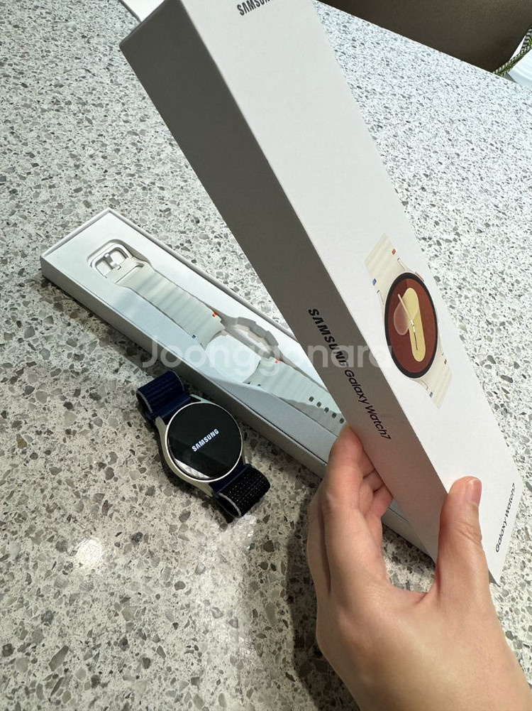 2025.3.11 구매 초1 아이한테 사줬는데, 전혀 사용을 할줄도 모르고 가지고 다니지도 않아서 판매합니다. Skt 공식 대리점 가서 정상해지 했어요 자급제는 어느 통신사건 상관 없다고 알고있는데 알아보세용 갤럭시 워치7 크림색 판매합니다. - 40mm 사이즈 - 크림 색상 - 제조일: 25년 2월 2일 - 모델 번호: SM-L305NZEAKOO - 박스 포함 - 밴드는 새것임 사진속 파란 밴드는 초등용으로 맞춤제작한거라 드리지 않아요 ( 너무 작아서 어른 착용 못함)