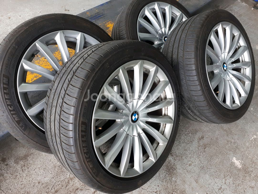 BMW G바디 휠타이어 1대분 19인치 PCD 112 J8.5 9.5 앞바퀴 사이즈 245 45 19 뒷바퀴 사이즈 275 40 19 휠 상태 깨끗(상처없는 제품) 타이어 좋아요 (일괄 판매) 낱개 판매X 지역은 경북 경산시 압량읍입니다.