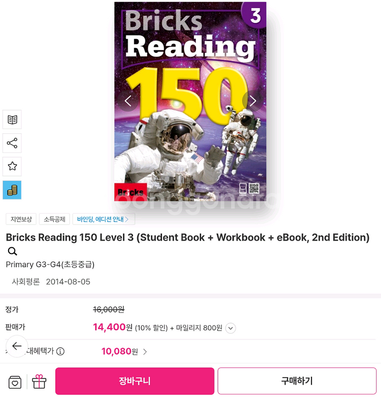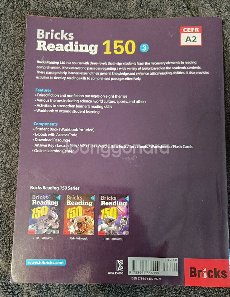 Bricks Reading 150 Level 3 교재입니다. 2020년 인쇄 단, 뒤 커버 우측 하단에 물이 번진 자국이 있습니다. 내부는 깨끗합니다. - Paired fiction and nonfiction passages on eight themes - Various themes including science, world culture, sports, and others - Activities to strengthen learner's reading skills - Workbook to expand student learning