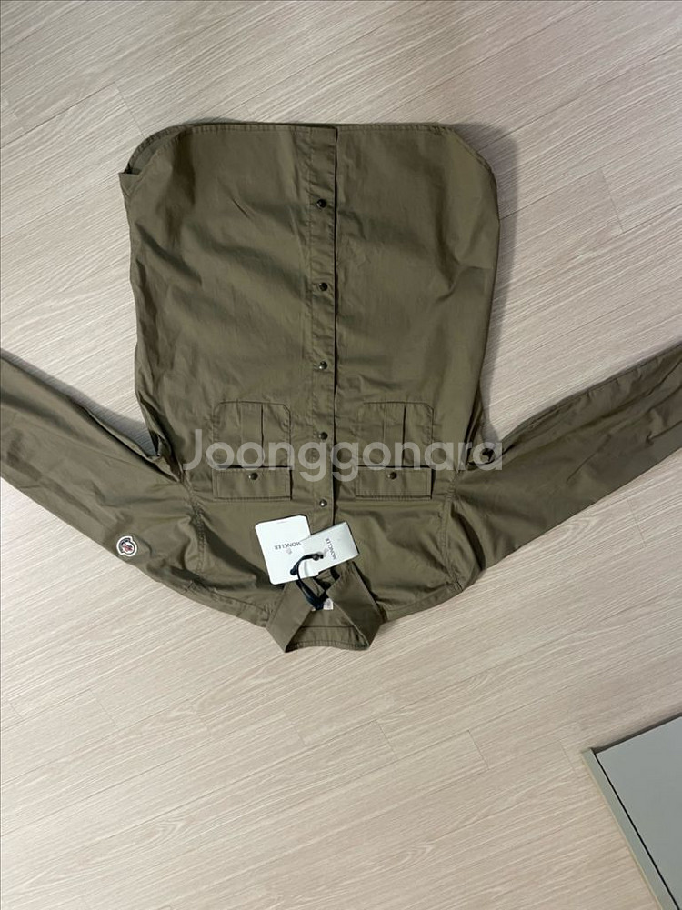 택 달린 몽클레어 오버셔츠입니다.사이즈는 m입니다 올리브카키 색상이라 가을에 입기 딱 좋아요. 가슴에 있는 포켓 디테일이 예뻐요. 선물 받았는데 사이즈가 미스라서 실착용이 한번도 없습니다.문의 주세용