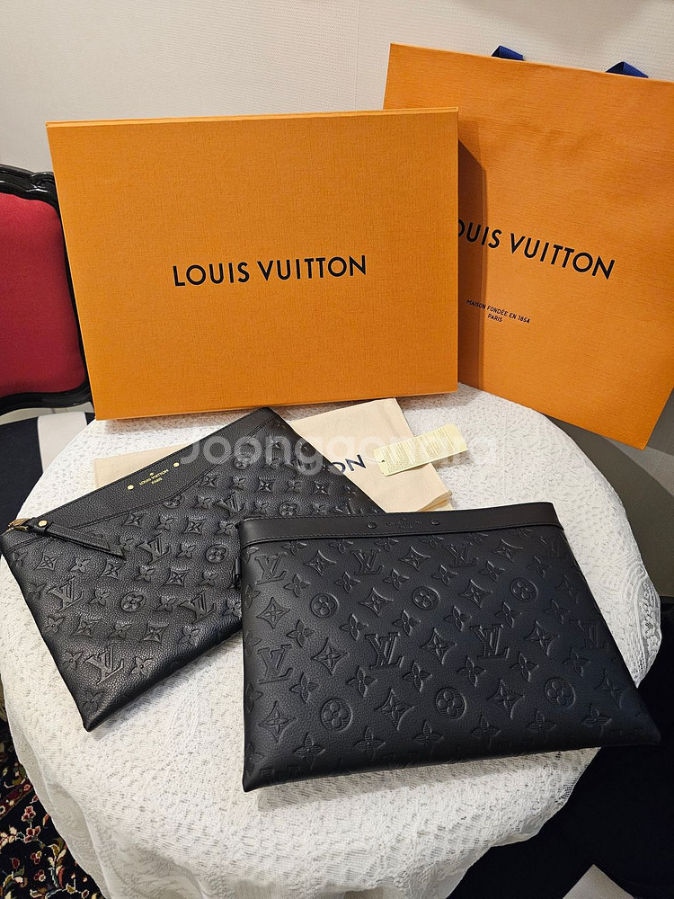 사용한 적 한 번도 없는 새 상품입니다. 1번 루이비통 M81570 포쉐트 투고 클러치 구매 시기: 2024년 12월 30일, 경기 신세계백화점 사용 기간: 미사용, 새 제품 하자 여부: 전혀 없습니다. 판매가: 140만 원 구성품: 풀 구성 (사진 참고) 2번 루이비통 M62937 데일리 파우치 구매 시기: 2024년 12월 30일, 경기 신세계백화점 사용 기간: 미사용, 새 제품 하자 여부: 전혀 없습니다. 판매가: 105만 원 구성품: 풀 구성 (사진 참고) 포쉐트 투고 클러치와 데일리 파우치를 세트로 구매하시면 235만 원에 드립니다. 직거래 우선