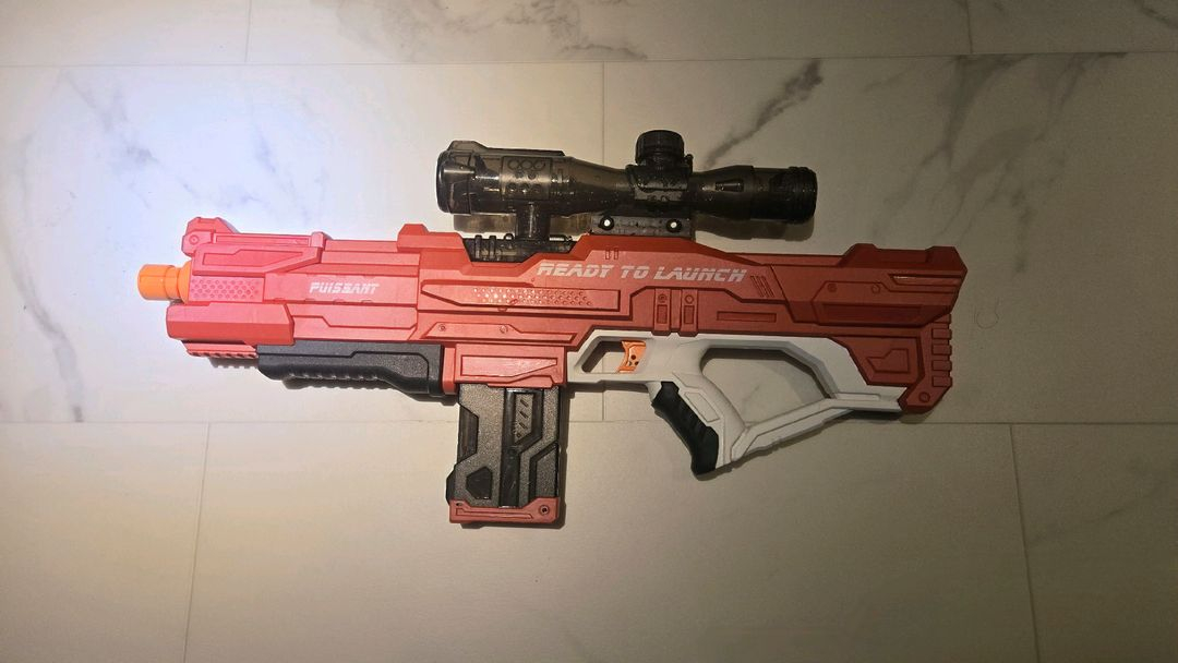 전동 물총 입니다 4핀 배터리 사용하는 모델이고 작동 잘됩니다 7.4V 4핀 배터리 usb 충전케이블 도 잘 있습니다