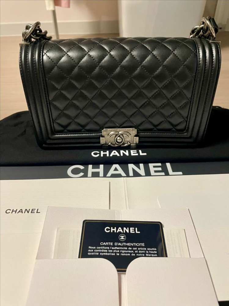 샤넬 보이백 은장 램스킨 상태 매우좋음. 2회 착용후 보관 압구정 현대백화점 구매 박스 게런티카드 등등 풀박 구성 댓글 잘 안보니 꼭 문자로. 네고 가능하오니 연락 주세요. 고가인만큼 직거래 010-3942-0745
