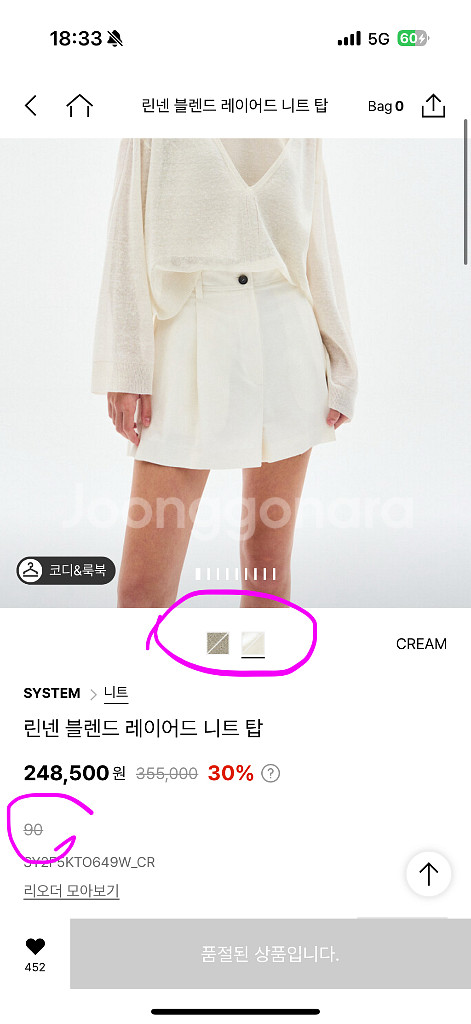 25.6월 매장 구매 시스템 니트 프리사이즈 상태 매우 좋음. 두컬러 모두 품절될 만큼 인기상품. 활용도 좋고 예쁨. 후기 160개 넘는 인기상품. 깔별로 해서 한개 정리해요. 구매가 355000, 판매가 145000원