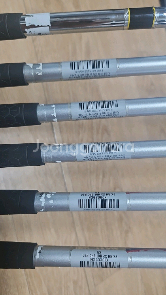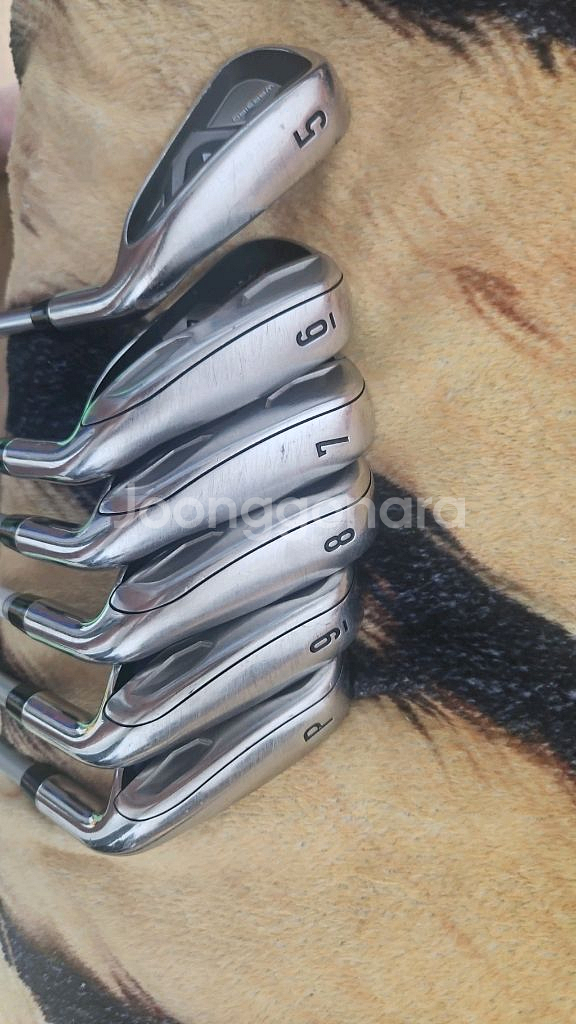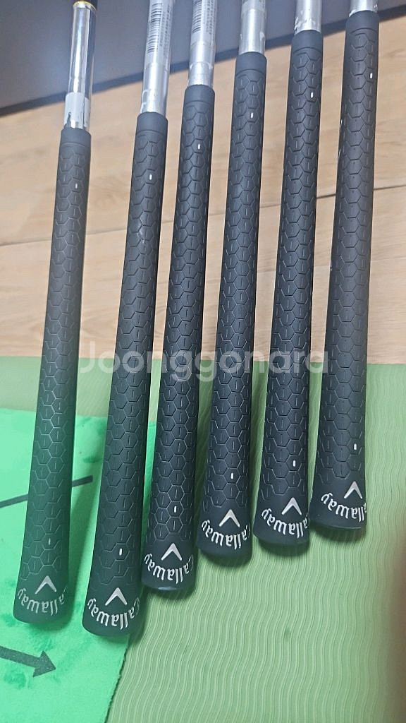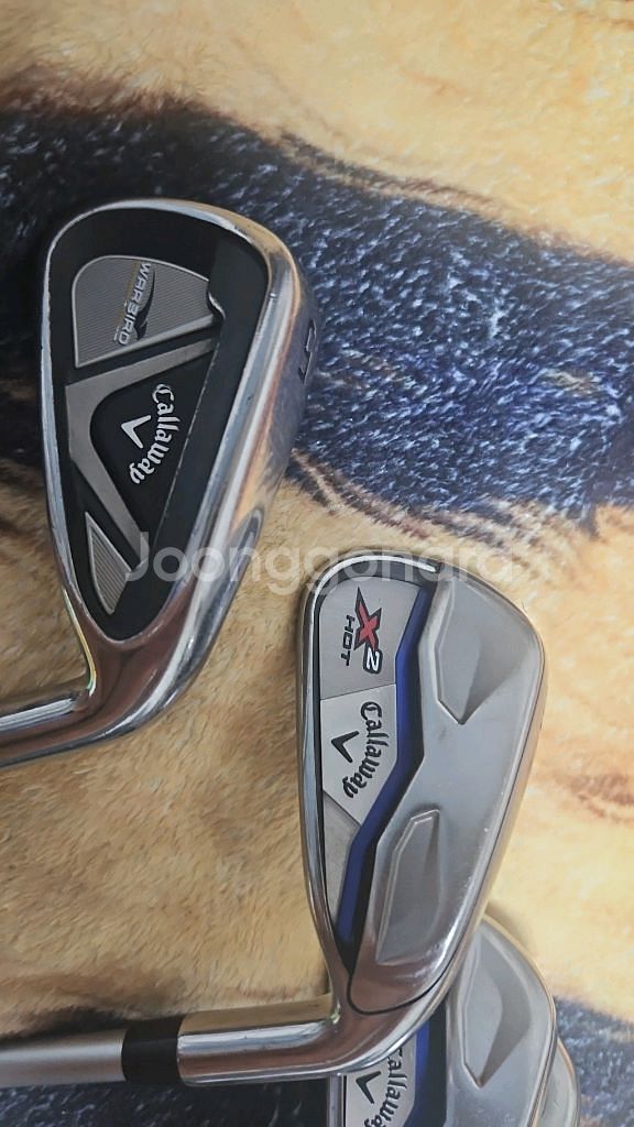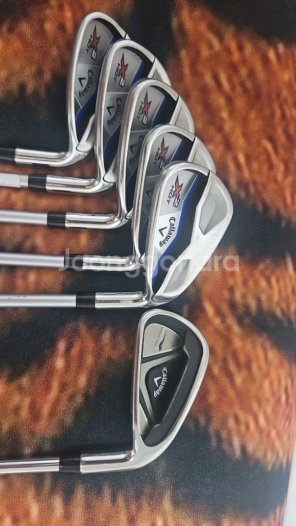 캘러웨이 X2 HOT. 6 ,7, 8, 9, PW, + 캘러웨이 워버드 5번 아이언 총6개 초중급자용 캘러웨이 X2 HOT 아이언 그라파이트 75R, 캘러웨이 워버드 아이언 95g경량스틸 약간 사용감있음(사진참고), 그립양호 14만원 쿨거래 희망합니다(택배비별도.또는 포함15만원) 5번은 추가로 구매했었는데. 경량스틸이라 그라파이트75R과는 느낌이 틀립니다 X2 HOT는 페이스 반발력이 잘 나오며 비거리가잘나오는 축에속합니다(당시로서는) 최신채에 대비해선 관용성(MOI)은 조금 낮으며(중상급수준) 로프트가 조금더 서 있습니다.(7번 아이언기준 요새 최신품은 28도, 이제품은 30~31도) 단조가 아니라 캐스팅(주조)제품이라 시간이 지났지만 금속피로도는 거의 없다고해도 무방합니다 스틸샤프트가아니라 내부부식도 해당없습니다(5번제외. 5번도 양호함) 손잡이 그립양호합니다(사진참조) 페이스도 사용감 있으나 무난 양호합니다(사진참조) 그냥 기타 수리없이 치시면 됩니다(필드 나가셔도 무난하리라 봅니다) 관용성 양호하며 타감 비거리벨런스 좋습니다. 단 요즘신품대비 해서는 타감약간딱딱하나 그라파이트라 문제없음. 런이 적은편이며, 탄도가 살짝낮은 느낌 어쨌든 초보가치기에(헤드스피드 40m/s수준~ 이하)딱좋고 치다 42m/s넘으면 다음으로 넘어가면됨. 5번은 거리욕심에 추가한 것이고 5번이 잘맞으시면 다음 넘어가심됩니다 ㅎㅎ 김제지역 직거래 가능하시며 타지역 택배 가능합니다