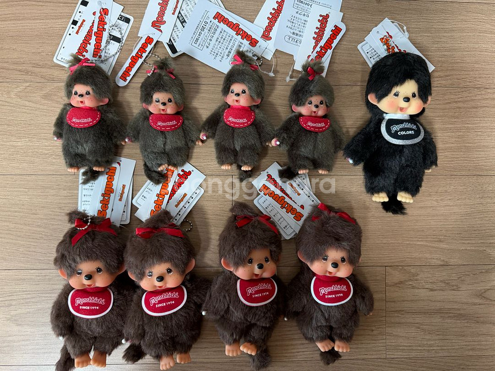 일본에서 사온 정품 몬치치 키링이에요. 사이즈가 다른데 작은아이는 올 여름 신상이고 사이즈가 달라요. 최대한 예쁜 아이들로 골라 왔어요. 윗줄 작은 몬치치 11cm - 20000 몬치치 ss 사이즈 여아들 16cm - 28000 블랙 몬치치 남아 16cm- 28000 반택은 지에스만 가능해요. 반택 2000 일반택 4000 이고 당일 발송 해드려요. 계좌만 가능하니 괜찮으신 분만 연락주셔요. 갈색 다 완료 블랙 남아만 남았어요.