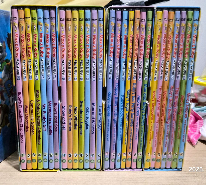 new 맥스 앤 루비 DVD 1~4집(완료) 레인보우 피쉬 DVD, 페파피그 DVD(완료) 퍼피구조대 DVD(완료) 인스펙터 가제트 DVD, 티모시 학교 DVD 세트입니다 각 1만원(단, 티모시 1,2집 합해서 1만원) 거의 새거 상태이며 개봉도 안해본 제품도 많습니다. 꼭 하실분만 연락주세요.