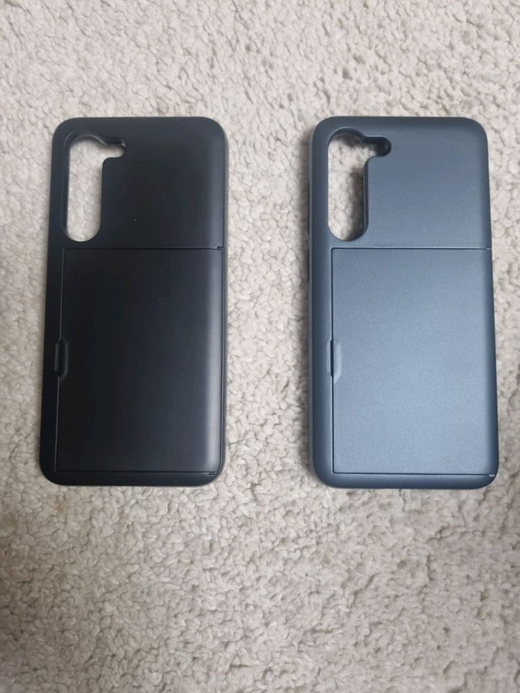 (새상품) 삼성 갤럭시 S23 케이스 2개 일괄 판매합니다. 핸드폰 모델명을 잘못봐서 캐이스 주문을 잘못해서 판매합니다. 한번도 사용하지 않은 새상품이며, 뒷면에 카드 삽입할 수 있는 범퍼형 케이스 입니다. 샥상은 블랙, 불루 2개 일괄 6,000원에 판매하며, 시중가 절반 가격에 2개 일괄 판매합니다. 직거래는 서울이며, 택배거래시 3,000원, 편의점 반값택배는 1,800원 입니다. 감사합니다.