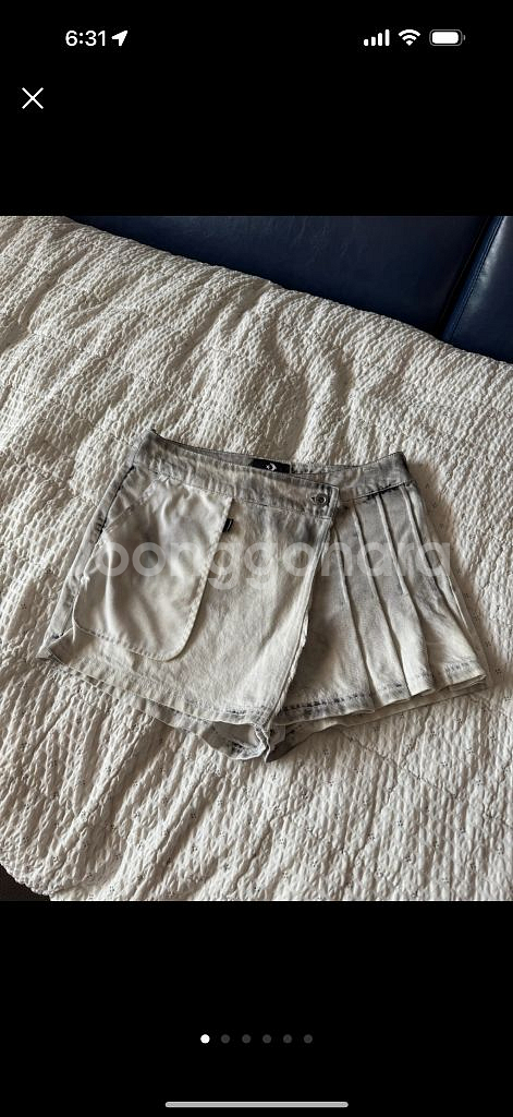 컨버스 스커트 스타일의 치마반바지입니다. 너무 독특하고 예뻐요 디테일도 좋구요 상태도 좋습니다 새상품이라고 생각 하시면 될것 같아요 촬영 때문에 30분정도 착용 한게 전부입니다! 에스파 카리나가 입어서 품절 되어서 백화점에서 마지막 남은 한장 샀었던 기억이 나네요 지금 입기 딱 좋을거 같네요 후회 없으실 겁니다! 허리 가로 단면 35-36 cm 정도 나옵니다