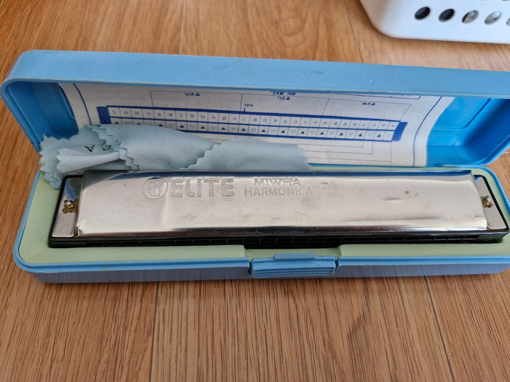 개인정보(거래정보)를 주고받는 행위는 사기에 노출될 수 있으므로 즉시 중고나라로 신고해 주세요하모니카 엘리트 미화 24홀 뒤쪽 플라스틱에 작게 이름 새겨진 흔적 있어요 소리 다 잘나옵니다.