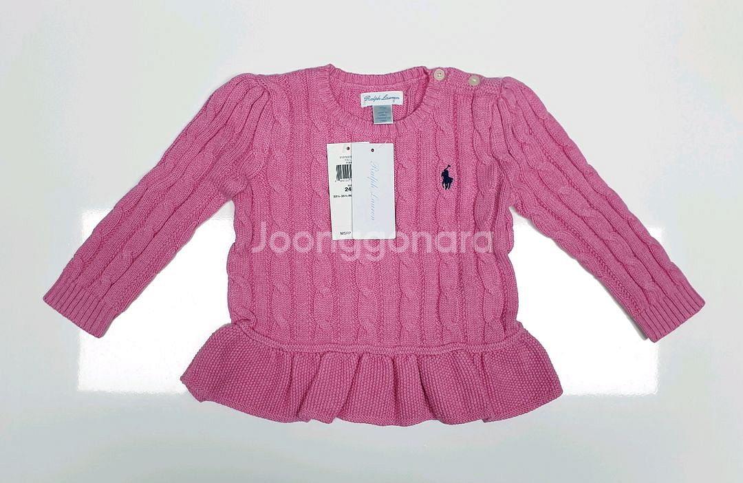 새상품인 폴로 베이비(여아) 핑크 케이블 니트 입니다.