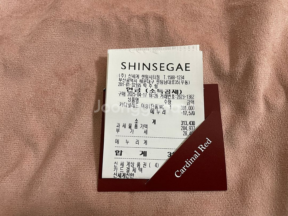 카디널레드 구입시기 : 2025. 4. 17 신세계백화점 센텀점 카디널레드 구매가 : 331000원 판매가 : 105000원 (택배비포함) 사용횟수 : 2회미만 사용감 : 없음 (새상품이나 다름없음) 구매의사가 확실하신분만 꼭 구매 부탁드리며, 구입시 바로 구매확정 해주셔야합니다